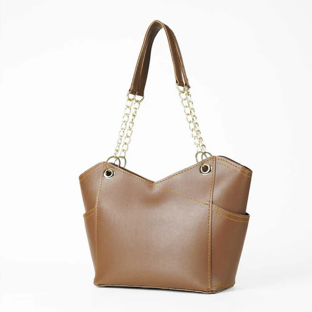Elevate your everyday look with this Chic Brown Faux Leather Shoulder Bag. Crafted from faux leather, this bag offers both durability and style. The unique triangular design, enhanced by gold-tone chain straps, makes it a standout accessory for any occasion. Whether you’re heading to work, running errands, or enjoying a weekend outing, this bag combines fashion and practicality.