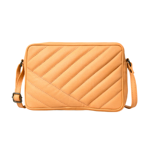 Elevate your everyday look with this stylish quilted peach crossbody bag. Crafted from faux leather, this compact yet spacious accessory features a sleek diagonal-stitched pattern for a modern edge. Ideal for casual outings or daily errands, the bag offers a lightweight, hands-free carrying experience with its adjustable strap and secure zip closure.
